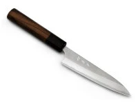 Das Messer sollte grundsätzlich gerade mit ziehendem oder schiebendem Schnitt geführt werden, ohne großen Druck. Vermeiden Sie, um die Schärfe zu erhalten, auf Stein, Glas oder anderen harten Unterlagen zu schneiden. Zum Nachschärfen auf keinen Fall „Wetzstahl“ verwenden. Empfohlen werden Wasserschleifsteine (Körnung: 400-1200 für Vorschliff, 3000 für den Feinschliff, 6000 oder mehr, um die Klinge abzuziehen) und ggf. ein Abziehleder.